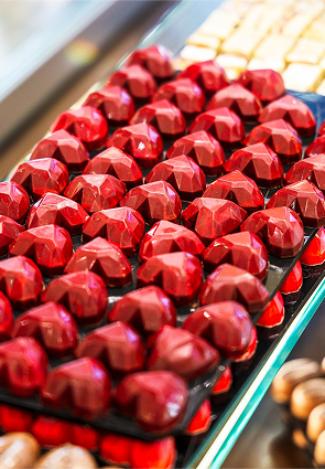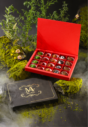 Çdo praline është një botë më vete, ku shkrirja perfekte e çokollatës takon mbushjet e rafinuara për të krijuar një përvojë elegante dhe të paharrueshme në çdo kafshatë. Punuar me çokollatë premium dhe përbërës të zgjedhur me kujdes, çdo formë, teksturë dhe nuancë shijeje është menduar për të kënaqur si ndjenjat, ashtu edhe shqisat.